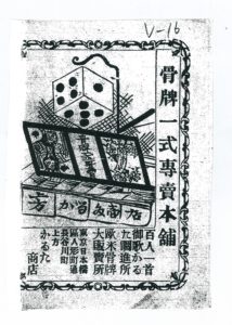 この広告により、「上方屋」のトランプの仕入れ先の一つが横浜の「商館」であったことが分かる。当時の事情からすると、ここが有力な、あるいは唯一の仕入れ先であったと思われる。なお、明治二十一年(1888)四月に「上方屋」が「同店出版西洋かるた」について警視総監によって出版・発売を差し止められたと伝える新聞記事がある[1]。「同店出版西洋かるた」は「出版」とあるのでトランプそのものではなくトランプの教則本であることが分かる。それが『西洋かるたの教師』を意味するのか、『遊戯大學 一名かるたの使用』がか『骨牌使用法』を意味するのか、あるいは未発見の『西洋かるた』という書物であったのかは分からない。「上方屋」以外にこういう取締を受けた事例はないし、「上方屋」に対する規制を裏付けるような史料も残されていない。その意味で不可解な記事であるが、これはトランプの販売に対する社会的な規制の強化ではなく、「上方屋」が、たとえば「團團社」のような他の販売者との間でトランプの教則本に関して販売権や著作権などのトラブルになって警察に規制されたことのように見えるが、この記事以外は確たる史料がないのでこれ以上の詮索はできない。
