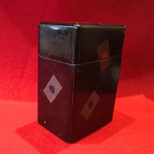 この二組のカードが、この木箱にもともと入っていたものなのか、それとも何かの事情で後にこの箱に納められたものなのかは分らない。一般に、当時のトランプは、本国では包装紙に包まれて売られていたものであり、アジア向けに輸出する際にわざわざ外箱を作ってこれを収納したとは思えない。カルタを木箱に入れるというのは日本の工夫である。しかし、明治十九年(1886)以降のトランプの解禁の当時には、「團團社」にしても、「上方屋」にしても、これをわざわざ外箱に入れて売り出したという記録はない。それも、紙箱ならあり得たかもしれないが、わざわざ木箱をこしらえるというのも変であるし、まして全面に漆絵を配するのはコストがかかり過ぎて行き過ぎの感が強い。